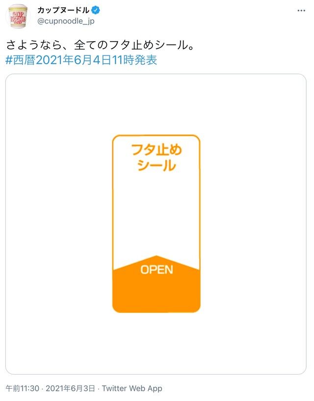 「さようなら、全てのフタ止めシール。#西暦2021年6月4日11時発表」
