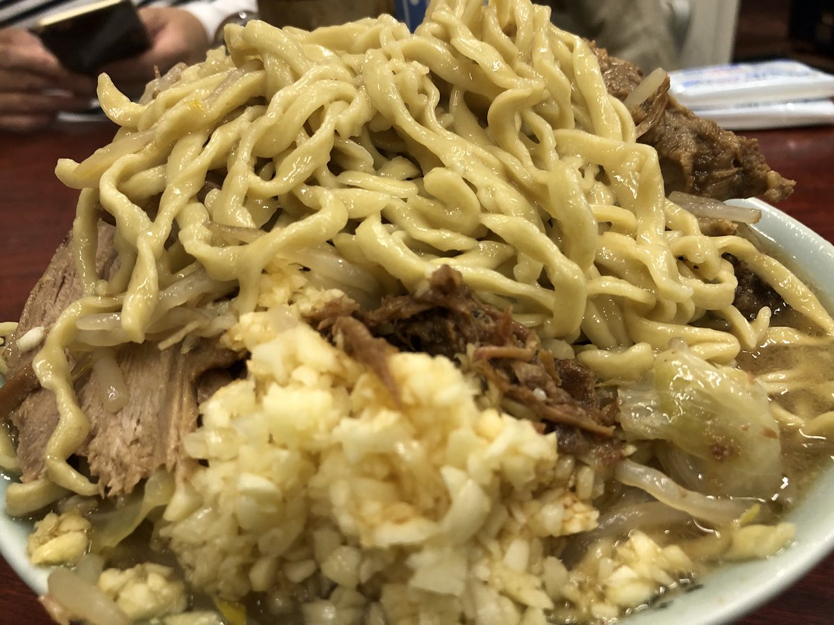 麺がギチギチで下のほうは麺同士がくっつく現象が発生 驚 50gほど残しての惜敗でした…