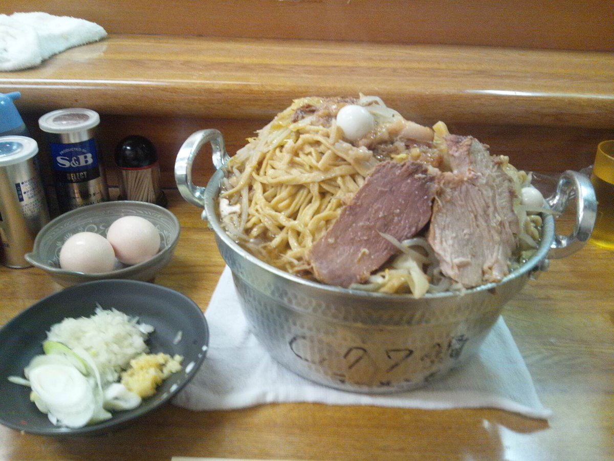 ラーメンそら訪問 ラーメンちょい増し1500g申請+生たまご まさかの鍋盛り登場です笑